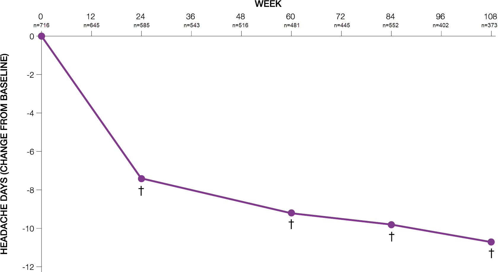 BOTOX® significantly reduces headache days up to 108 weeks4