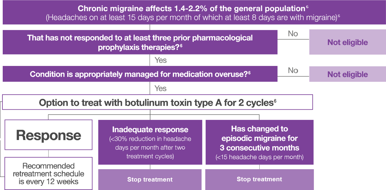 Guidelines recommend BOTOX® as a treatment option in the management of chronic migraine6,7