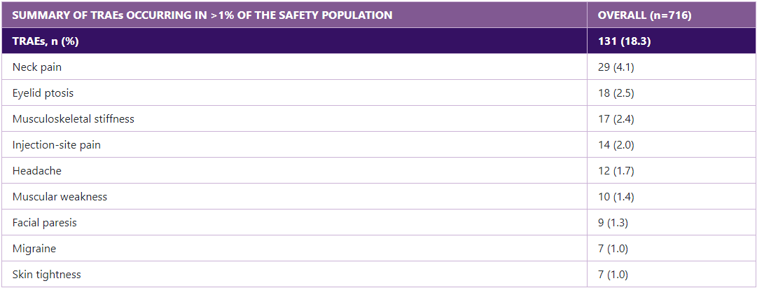The rate of treatment-emergent adverse events progressively decreases with subsequent rounds of BOTOX® treatment.9