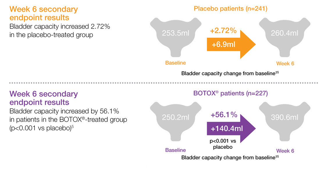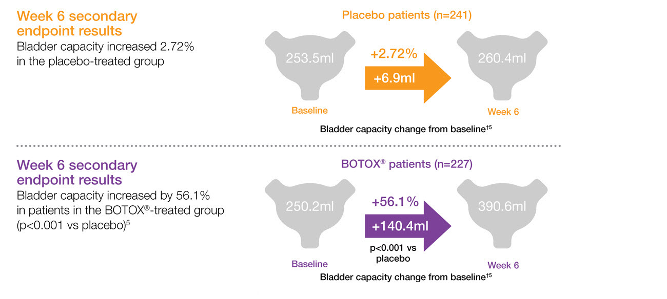 BOTOX® increases bladder capacity in patients with urinary incontinence due to NDO5,6,7