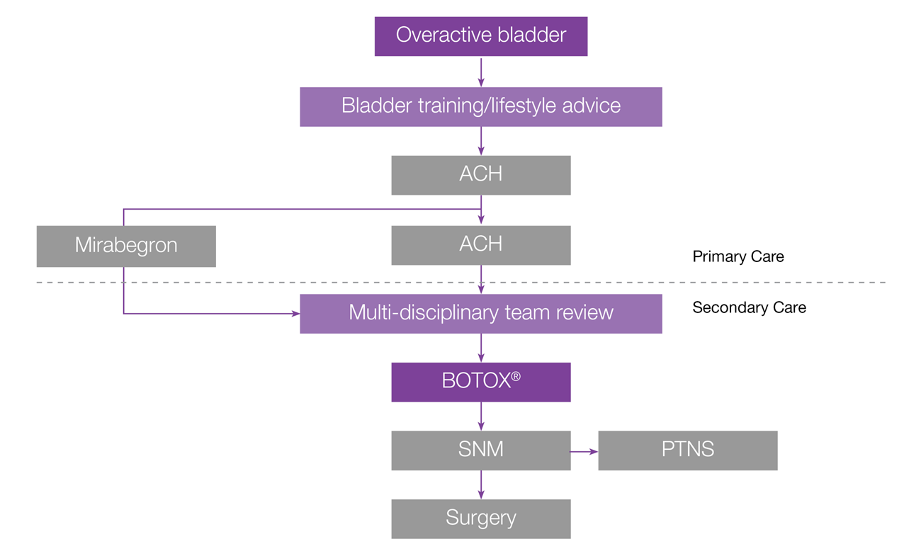 ACH: anticholinergic; MDT, multi disciplinary team; NICE: National Institute for Health and Care Excellence; OAB: overactive bladder; SMC: Scottish Medicines Consortium