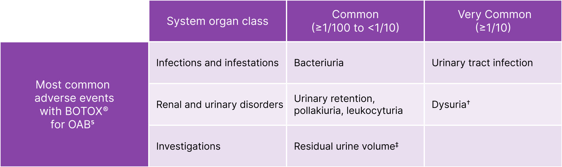 BOTOX® is generally well-tolerated in overactive bladder (OAB)5