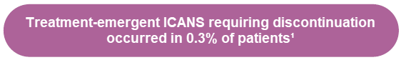 *One patient (0.6%) experienced a fatal adverse reaction (ICANS).2