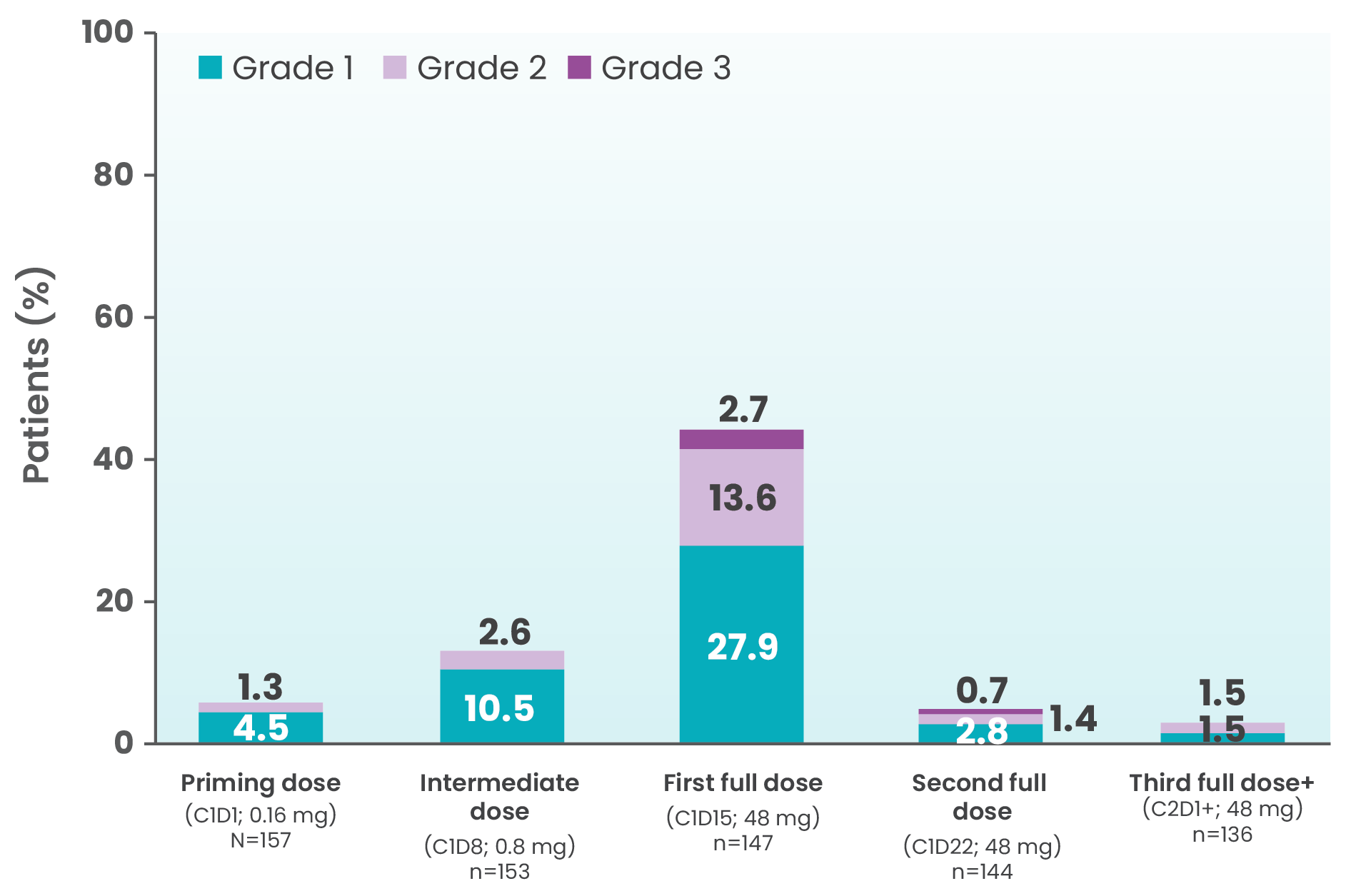 - Dose delays due to ICANS occurred in 1.0% of patients