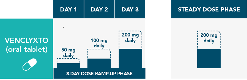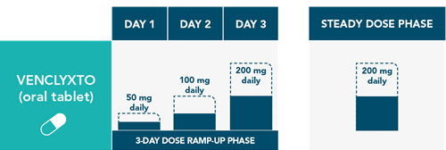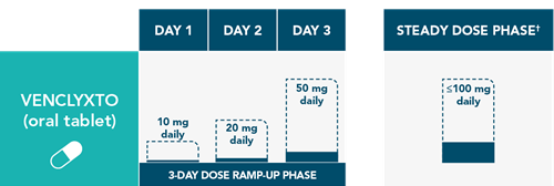 †The VENCLYXTO dose that was used prior to initiating the CYP3A inhibitor should be resumed 2-3 days after discontinuation of the CYP3A inhibitor.1