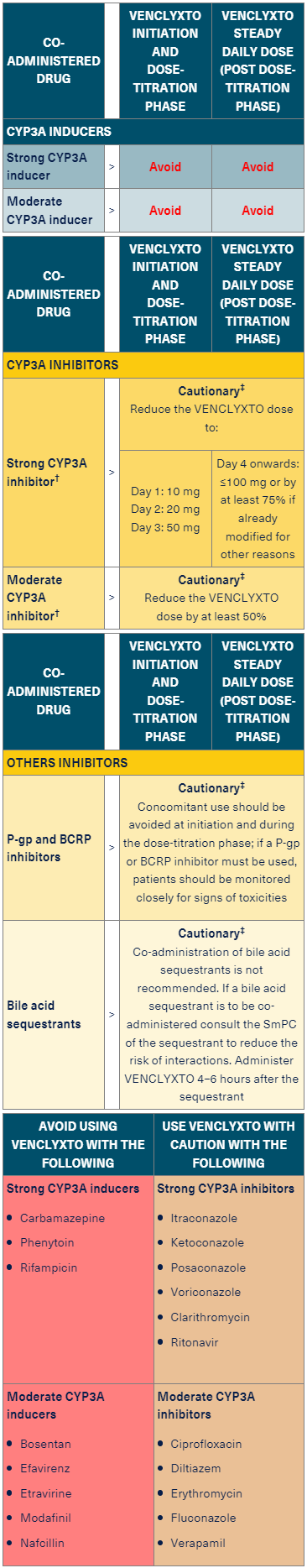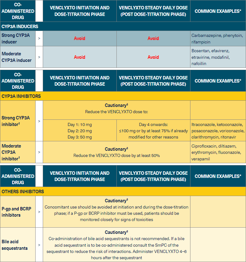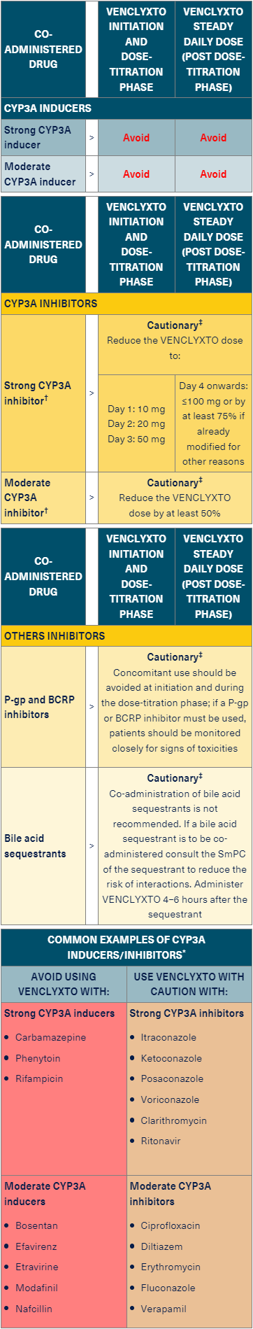 If given with other CYP3A inhibitors/inducers, P-gp or BCRP inhibitors, you may need to avoid VENCLYXTO use or reduce the dose