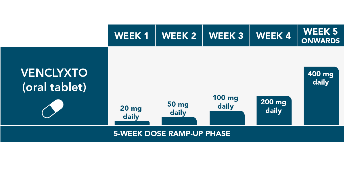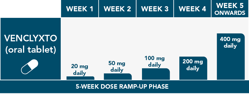 VENCLYXTO is administered once daily with the dose increasing per the titration schedule below1