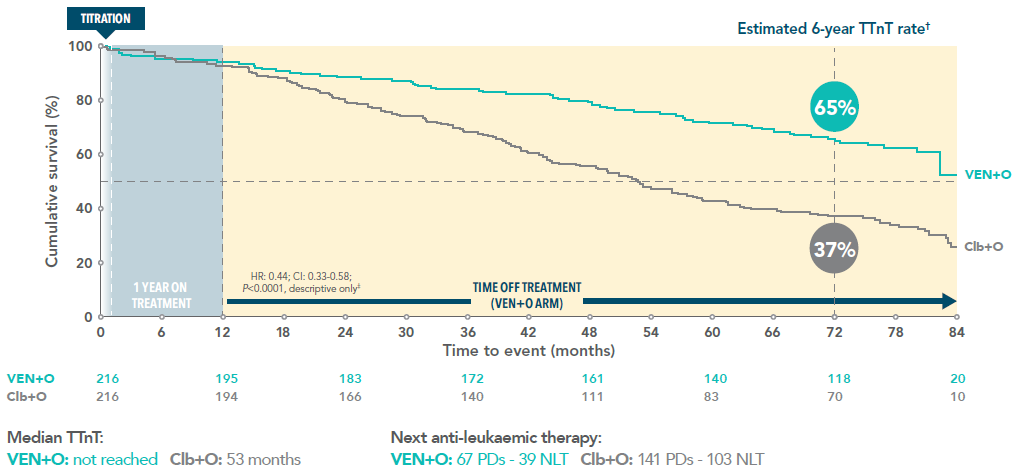 Over 6 out of 10 VEN+O patients were still treatment-free 6 years after initiating treatment3