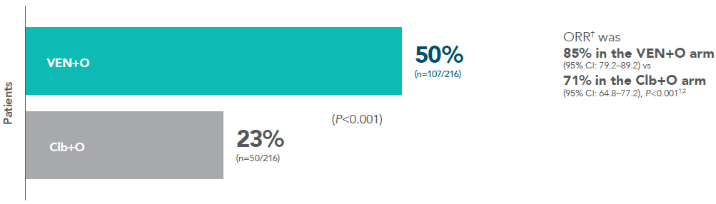 †VENCLYXTO was started on Cycle 1, Day 22 and increased to full dose for Cycle 3, Day 1. VENCLYXTO was continued until the end of Cycle 12. VENCLYXTO 400 mg daily after initial dose-titration period.
