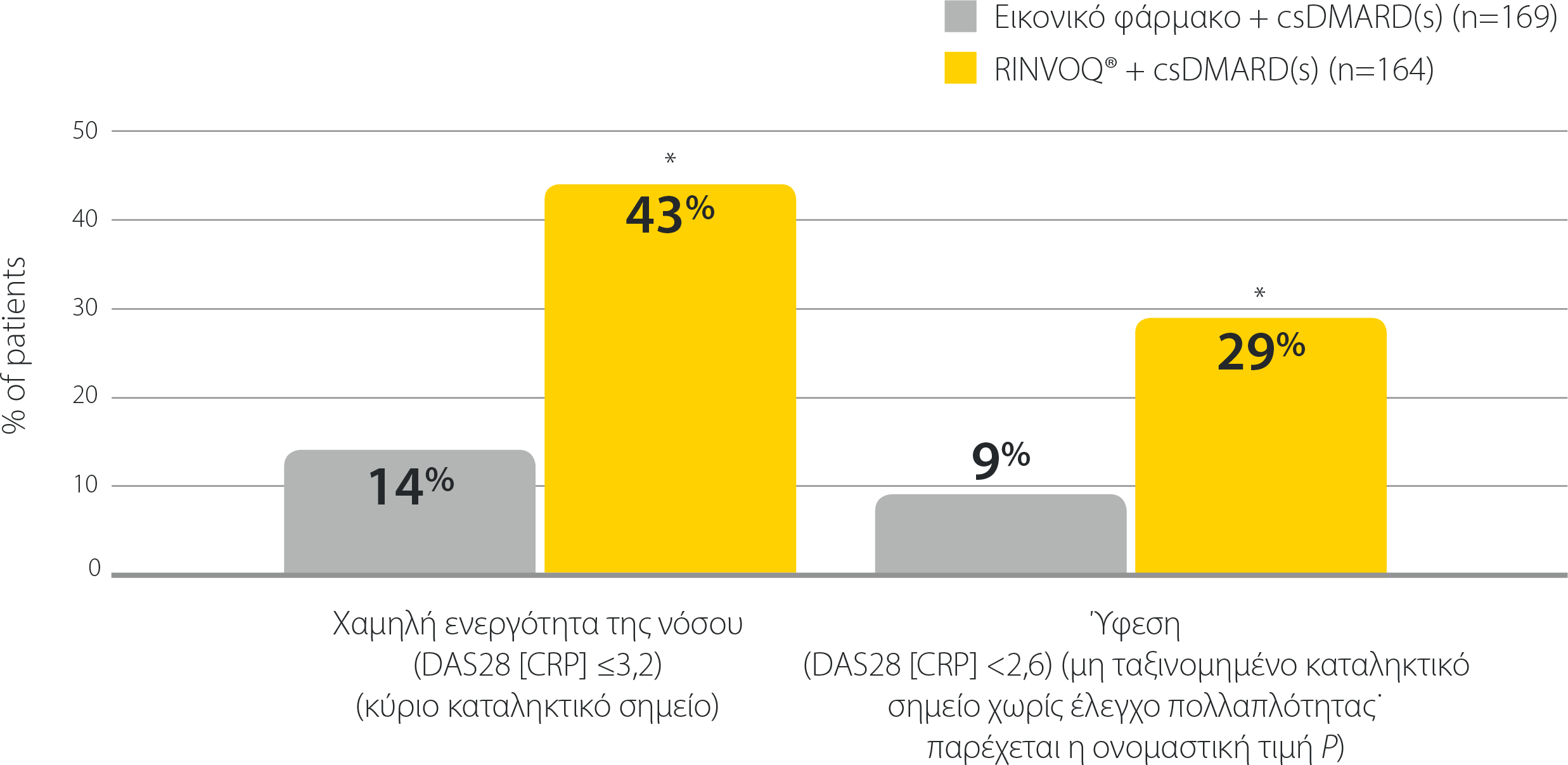 *P≤0,001 έναντι εικονικού φαρμάκου + csDMARD(s)