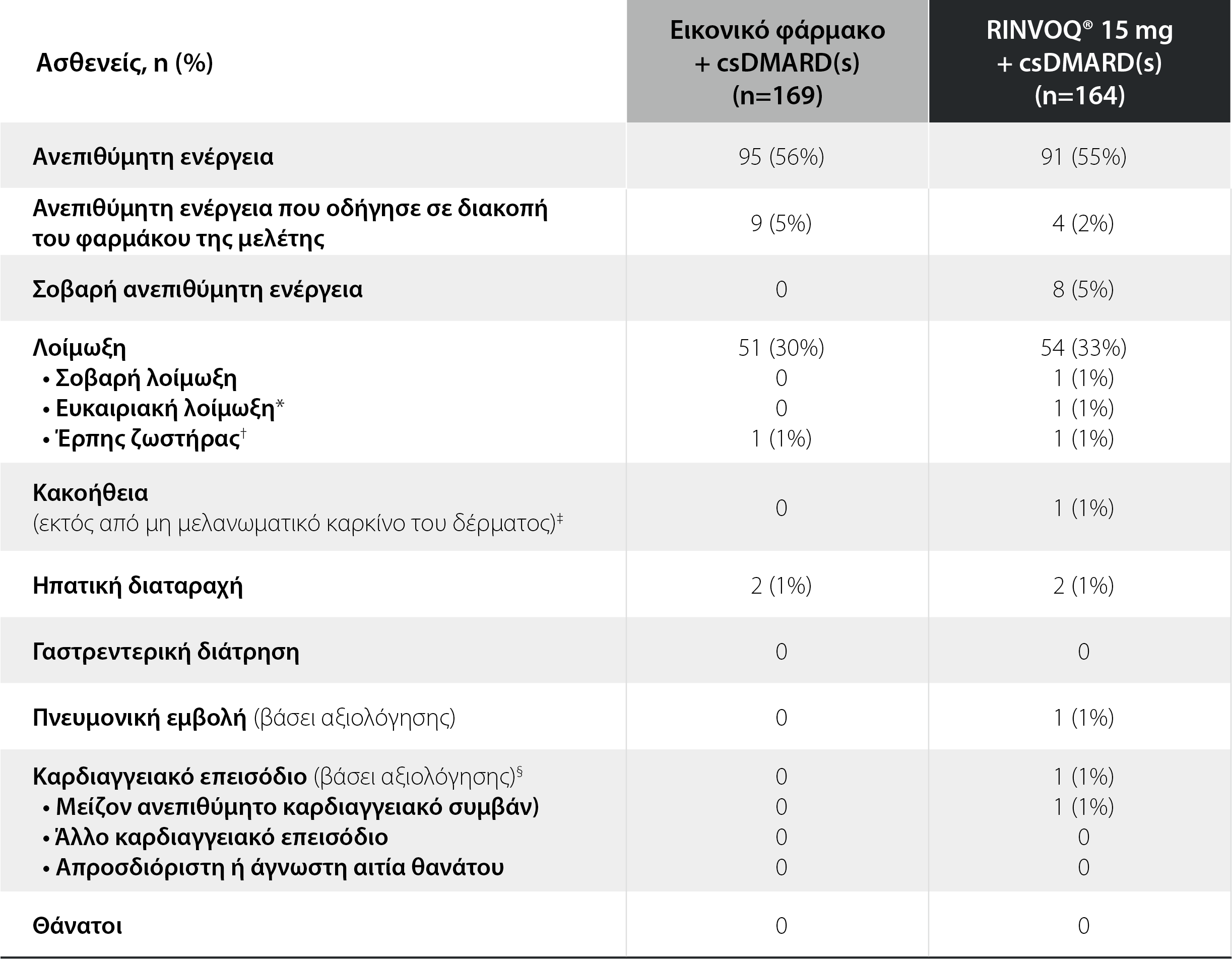 §Ένα ισχαιμικό εγκεφαλικό επεισόδιο τις εβδομάδες 0-12 στην ομάδα του RINVOQ® 15 mg.