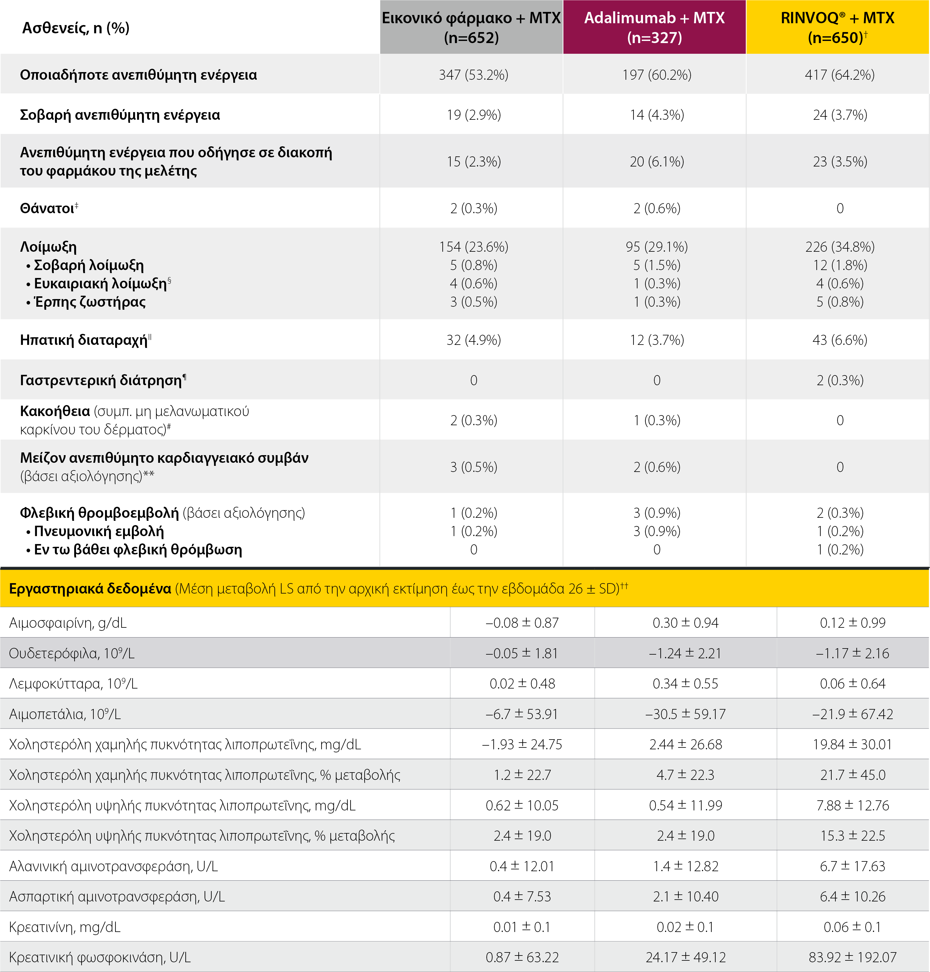 §Αναφέρθηκε μόνο 1 συμβάν λανθάνουσας φυματίωσης (στην ομάδα του RINVOQ® + MTX).