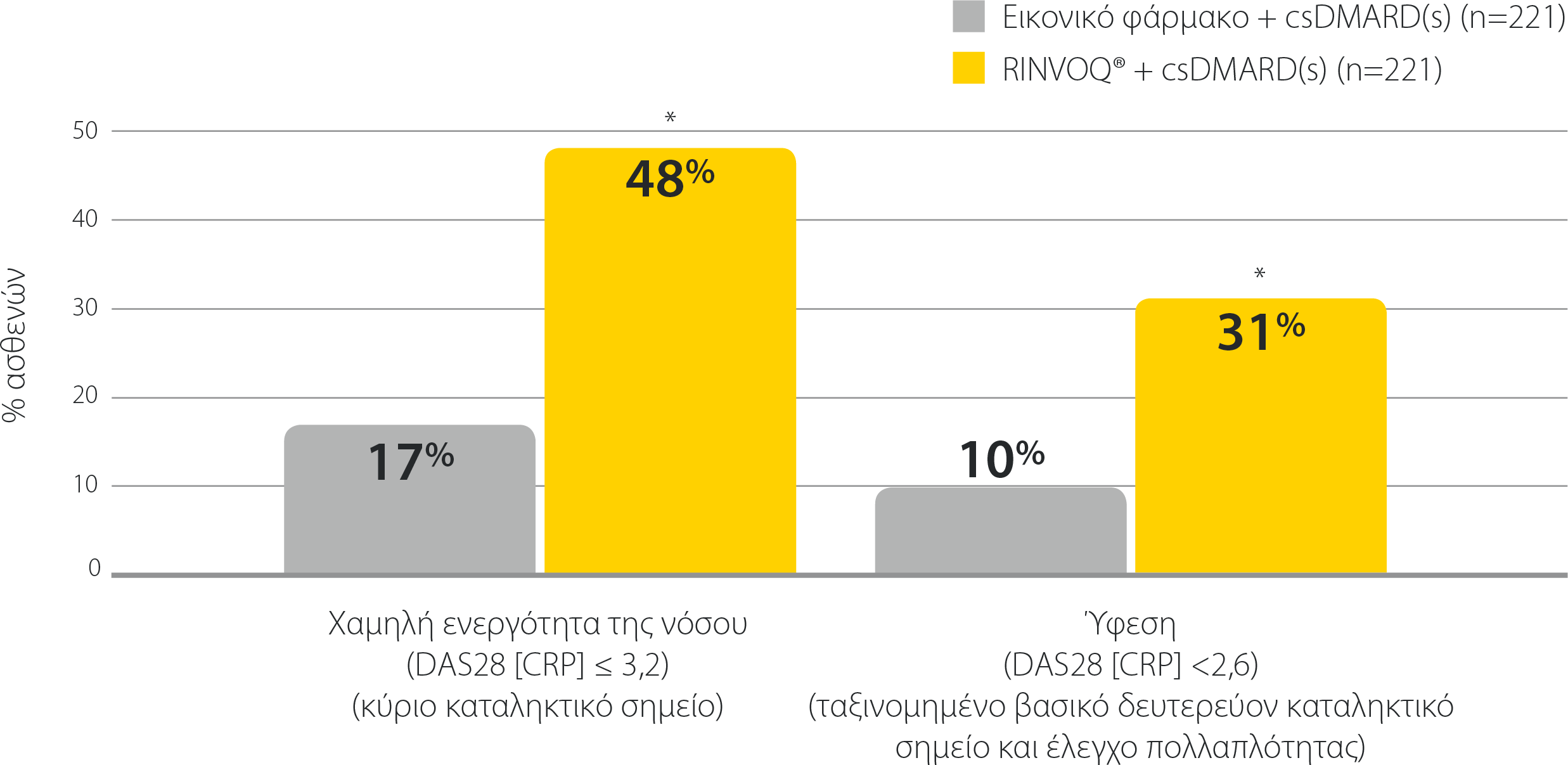 *P≤0,001 έναντι εικονικού φαρμάκου + csDMARD(s)