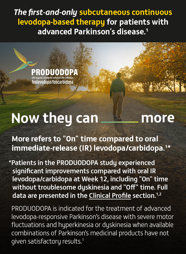 Please refer to the Produodopa SmPC for complete Prescribing and Safety Information.