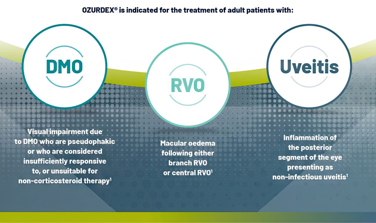 1. OZURDEX®. Summary of Product Characteristics; 2. Garcia-Layana A, et al. Ophthalmologica. 2018;240:61–72.; 3. Wang K, et al. Biol Pharm Bull. 2008;31:1541–6; 4. Rezar-Dreindl S, et al. Acta Ophthalmol. 2017;95:e119–27; 5. Edelman JL, et al. Exp Eye Res. 2005;80:249–58; 6. Tamura H, et al. Invest Ophthalmolo Vis Sci. 2005;46(4):1440–4; 7. Nehme A and Edelman J. Invest Ophthalmol Vis Sci. 2008;49:2030–8.