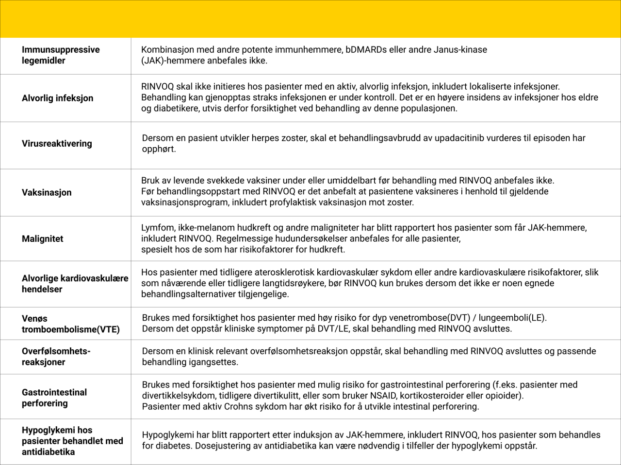 Referanse: 1. Rinvoq SmPC avsnitt 4.4, sist godkjent 24.10.2024.