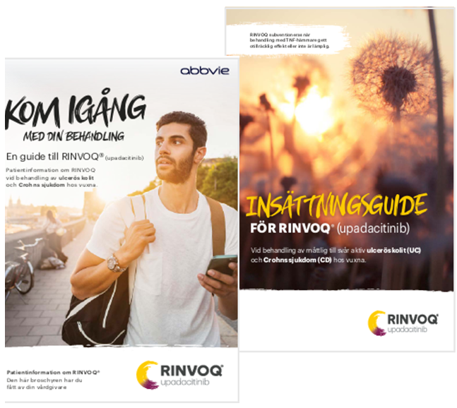 RINVOQ® (upadacitinib), depottablett 15 mg, 30 mg, 45 mg (F), Rx, ATC-kod L04AF03 JAK-hämmare. Indikationer: måttlig till svår aktiv reumatoid artrit hos vuxna med otillräckligt behandlingssvar på eller intolerans mot ett eller flera DMARDs i monoterapi eller i kombination med metotrexat. Aktiv psoriasisartrit hos vuxna med otillräckligt behandlingssvar på eller intolerans mot ett eller flera DMARDs, i monoterapi eller i kombination med metotrexat. Axial spondylartrit: – Aktiv icke-radiografisk axial spondylartrit hos vuxna med objektiva tecken på inflammation som anges av förhöjda nivåer av CRP och/eller MRI, som har otillräckligt behandlingssvar på NSAID. – Aktiv ankyloserande spondylit (radiografisk axial spondylartrit) hos vuxna med otillräckligt behandlingssvar på konventionell behandling. Hos vuxna med jättecellsartrit (GCA) . Måttlig till svår atopisk dermatit hos vuxna och ungdomar 12 år och äldre vilka är aktuella för systemisk behandling. Måttlig till svår aktiv ulcerös kolit eller Crohns sjukdom hos vuxna med otillräckligt behandlingssvar, förlorat behandlingssvar eller som varit intoleranta mot konventionell behandling eller biologiska läkemedel. Kontraindikationer: Överkänslighet mot den aktiva substansen eller mot något hjälpämne. Aktiv tuberkulos (TB) eller aktiv allvarlig infektion. Gravt nedsatt leverfunktion. Graviditet. Effekter på förmågan att framföra fordon: RINVOQ kan ha en liten effekt på förmågan att framföra fordon och använda maskiner eftersom yrsel och vertigo kan inträffa under behandling. Varningar och försiktighet: RINVOQ ska endast användas om inga lämpliga behandlingsalternativ är tillgängliga för patienter: som är 65 år eller äldre; med en anamnes på aterosklerotisk hjärt-kärlsjukdom eller andra kardiovaskulära riskfaktorer (t.ex. nuvarande eller tidigare långtidsrökare); med riskfaktorer för malignitet (t.ex. nuvarande eller tidigare malignitet). RINVOQ ska inte påbörjas hos patienter med aktiva, allvarliga infektioner, inkl. lokala infektioner och TB. Virusreaktivering, inkl. fall av reaktivering av herpesvirus (t.ex. herpes zoster), har rapporterats i kliniska studier. Påbörja inte eller avbryt tillfälligt behandling om onormala lab-värden som anemi, neutropeni, lymfopeni och levertransaminaser påträffas. RINVOQ associerades med ökade lipidparametrar i kliniska studier. Divertikulit och gastrointestinal perforation har rapporteras i kliniska prövningar och från klinisk erfarenhet. Patienter med aktiv Crohns sjukdom löper ökad risk att utveckla tarmperforation. VTE har rapporterats hos patienter på RINVOQ. Hos patienter med kända VTE-riskfaktorer ska RINVOQ användas med försiktighet. Allvarliga överkänslighetsreaktioner har rapporterats med RINVOQ. Fertilitet, graviditet och amning: Fertila kvinnor ska rådas använda effektiv preventivmetod under behandling och i minst 4 veckor efter avslutad behandling. RINVOQ är kontraindicerat under graviditet och ska inte användas under amning. För ytterligare information samt priser se www.fass.se. För information: kontakta AbbVie AB, 08 684 44 600. Datum för översyn av produktresumén: 2 juni 2025.